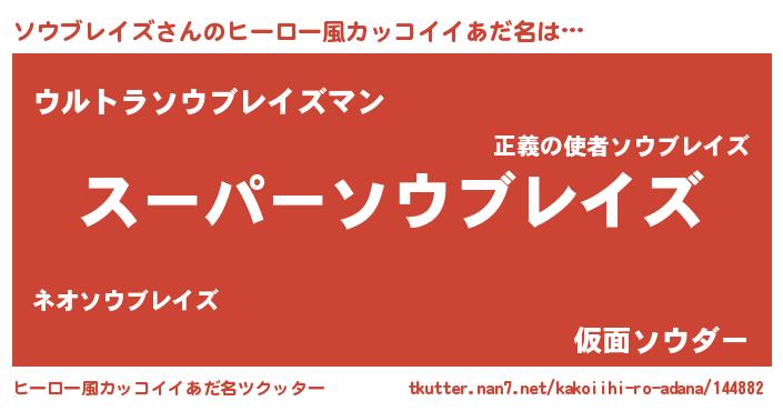 | 胡散臭い通販商品みたいなあだ名 | 『必ず成功するブレスレット…その名も「ソウブレイズ」』 |