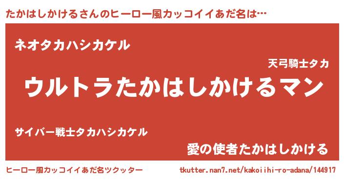 | 女子向けラノベタイトル風あだ名 | 『たかはしかけるの雑貨屋さん』 |