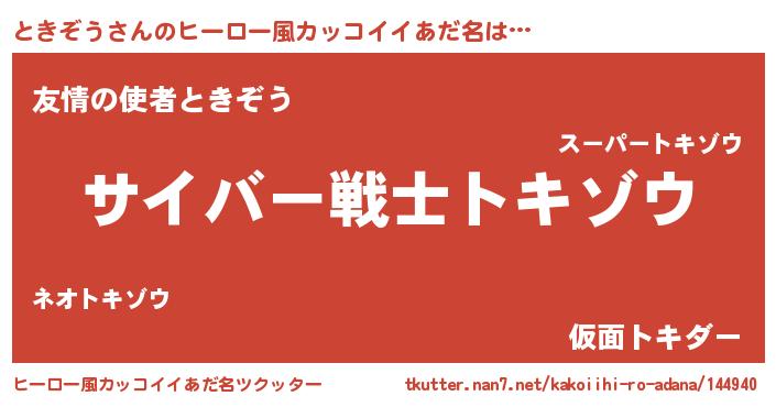 | 男性向けラノベタイトル風あだ名 | 『転生したらときぞうだった件』 |