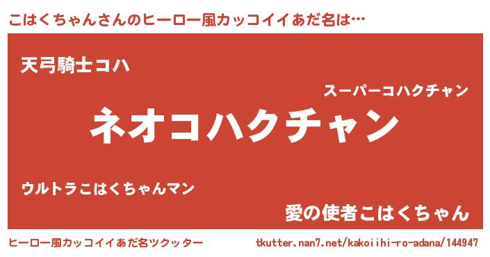 | 女子向けラノベタイトル風あだ名 | 『異世界で失敗しない100のこはくちゃん』 |