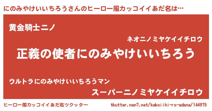 | 胡散臭い通販商品みたいなあだ名 | 『100人中100人が認めたマグネット磁石…その名も「にのみやけいいちろう」』 |