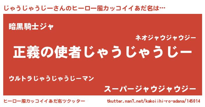 | 男性向けラノベタイトル風あだ名 | 『おまえをオタクにしてやるから、俺をじゃうじゃうじーにしてくれ! 』 |