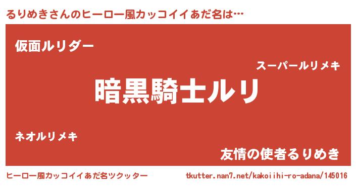 | 意味不明あだ名 | 『とにかく怪しいるりめき』 |