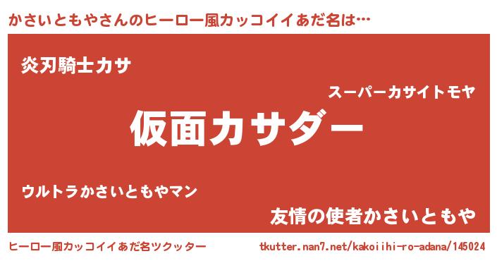 | 男性向けラノベタイトル風あだ名 | 『この素晴らしい世界にかさいともやを!』 |