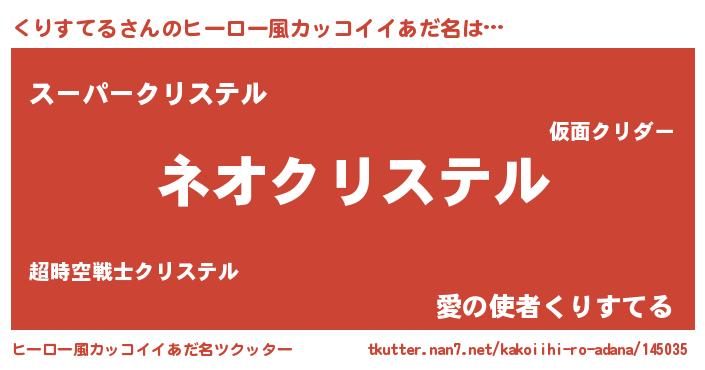 | 胡散臭い通販商品みたいなあだ名 | 『来世でも幸せになれる健康食品…その名も「くりすてる」』 |
