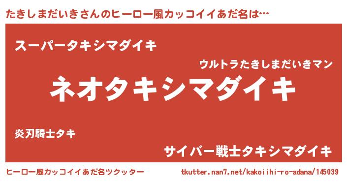 | ヘコむあだ名 | 『たきしまだいき(爆)』『たきにゅー』 |