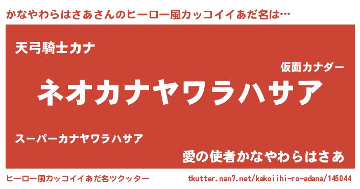 | 男性向けラノベタイトル風あだ名 | 『かなやわらはさあという概念が存在しない退屈な世界 』 |