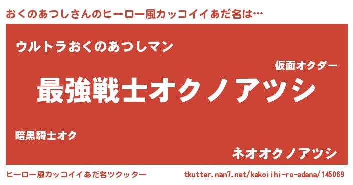 | 女子向けラノベタイトル風あだ名 | 『おくのあつしストレイドッグス』 |