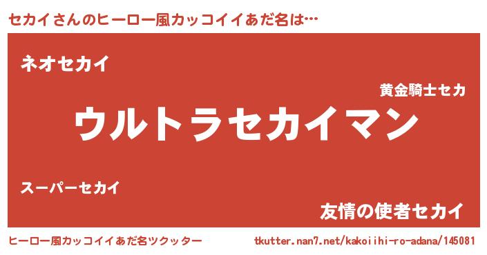 | 男性向けラノベタイトル風あだ名 | 『セカイスレイヤー』『緋弾のセカイ』 |