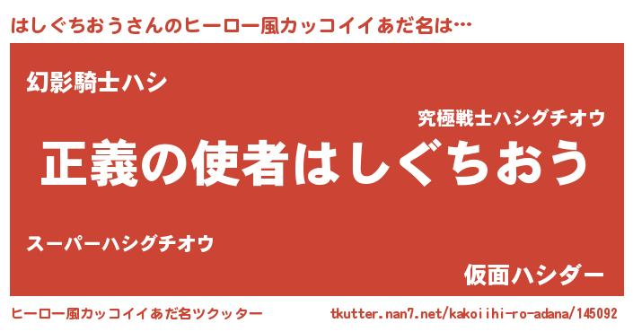 | 男性向けラノベタイトル風あだ名 | 『おまえをオタクにしてやるから、俺をはしぐちおうにしてくれ! 』 |