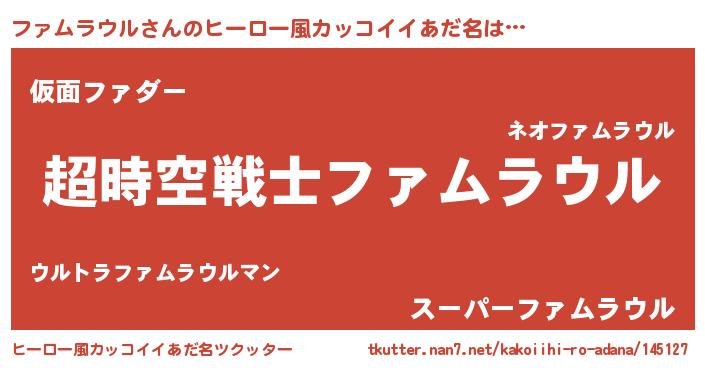 | ヘコむあだ名 | 『ファにゅー』『ファムラウル(爆)』 |