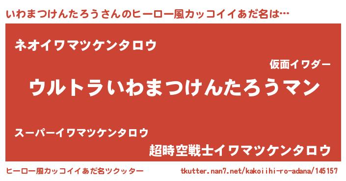 | 男性向けラノベタイトル風あだ名 | 『うちのいわまつけんたろうが世界を掌握している!』 |