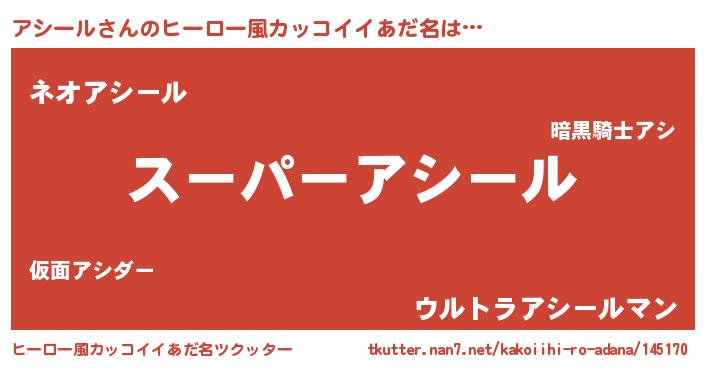 | 男性向けラノベタイトル風あだ名 | 『アシールアートオンライン』 |