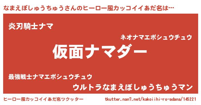 | 料理風あだ名 | 『なまえぼしゅうちゅうのカルパッチョ風』 |