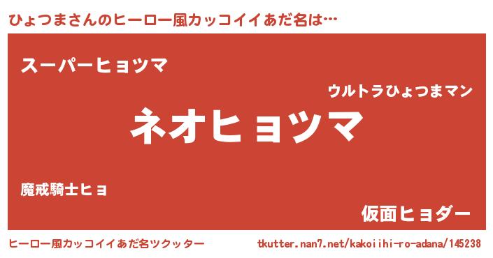 | 意味不明あだ名 | 『永久保存ひょつま』『ペロリンひょつま』 |