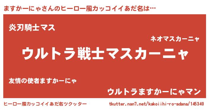 | 男性向けラノベタイトル風あだ名 | 『転生したらますかーにゃだった件』 |