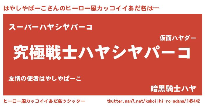 | 男性向けラノベタイトル風あだ名 | 『はやしやぱーこに滅ぼされるだけの簡単なお仕事です』 |