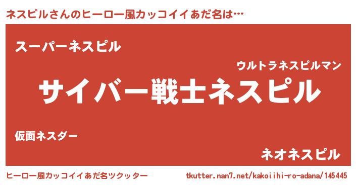 | 男性向けラノベタイトル風あだ名 | 『Re:ネスピルから始める異世界生活』 |