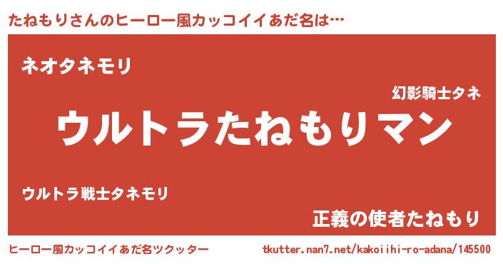 | 伝説のあだ名 | 『最強の忍者たねもり』 |