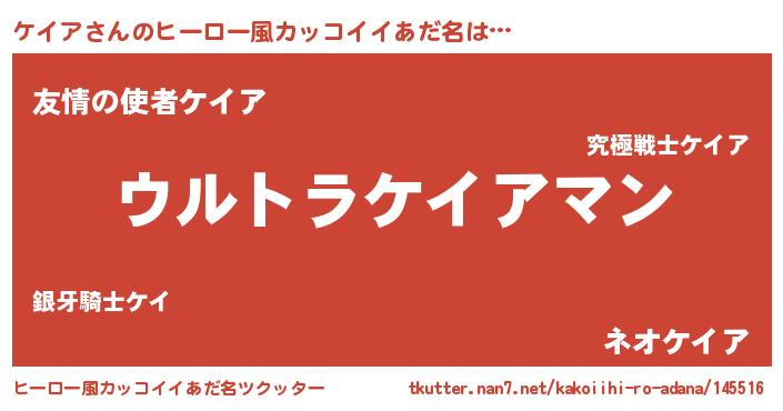 | 女子向けラノベタイトル風あだ名 | 『ケイアの玉の輿計画!』『ケイア恋絵巻』 |