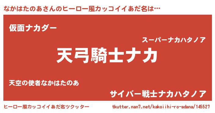 | 女子向けラノベタイトル風あだ名 | 『なかはたのあ様がみてる』 |