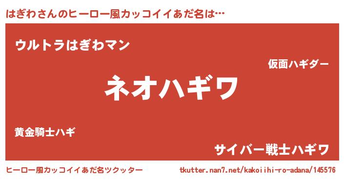 | 男性向けラノベタイトル風あだ名 | 『はぎわという概念が存在しない退屈な世界 』 |