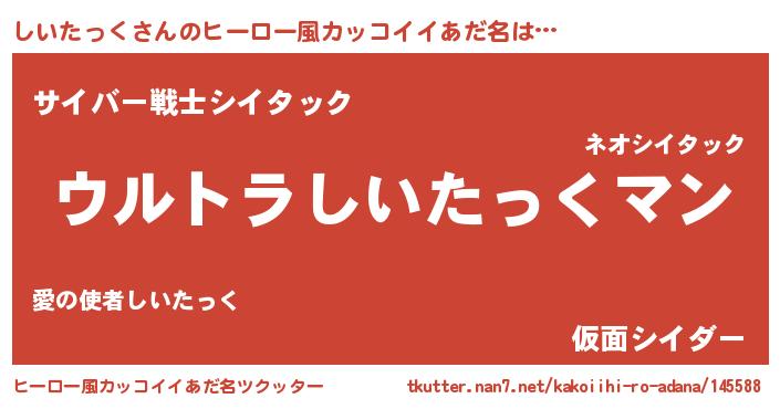 | 女子向けラノベタイトル風あだ名 | 『しいたっくの婚約者』『闇のしいたっく』 |