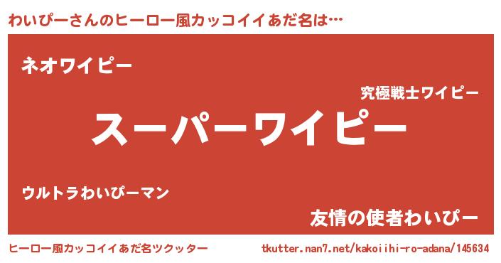 | 男性向けラノベタイトル風あだ名 | 『ワイピースレイヤー』『わいぴーの憂鬱』 |