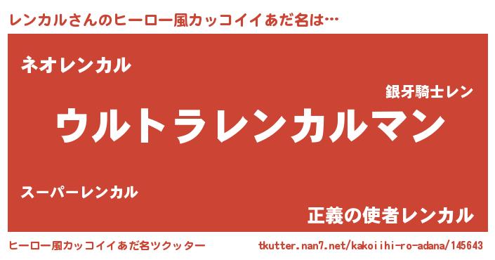 | 意味不明あだ名 | 『レンカルフォーエバー』 |