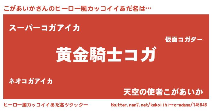 | 胡散臭い通販商品みたいなあだ名 | 『信頼と実績のサプリメント…その名も「こがあいか」』 |