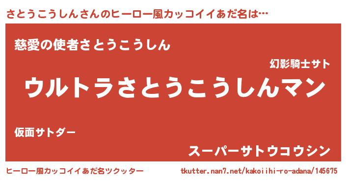 | 女子向けラノベタイトル風あだ名 | 『さとうこうしんの玉の輿計画!』 |