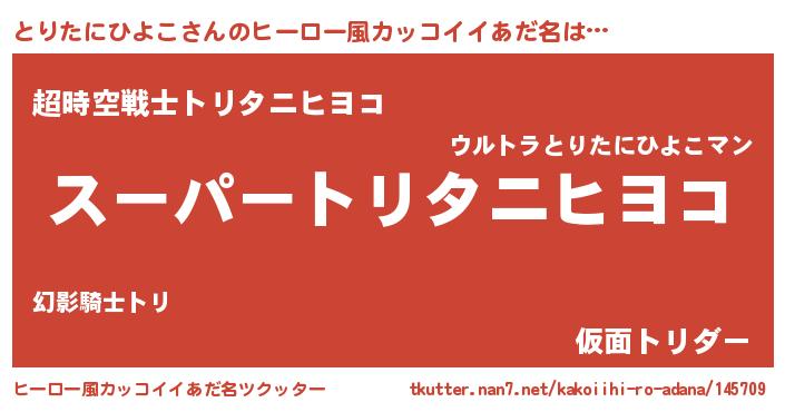 | 胡散臭い通販商品みたいなあだ名 | 『モテモテ間違いなし霊験あらたかなお札…その名も「とりたにひよこ」』 |