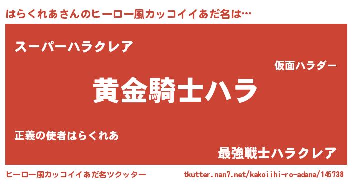 | 女子向けラノベタイトル風あだ名 | 『はらくれあは平凡を望む』 |