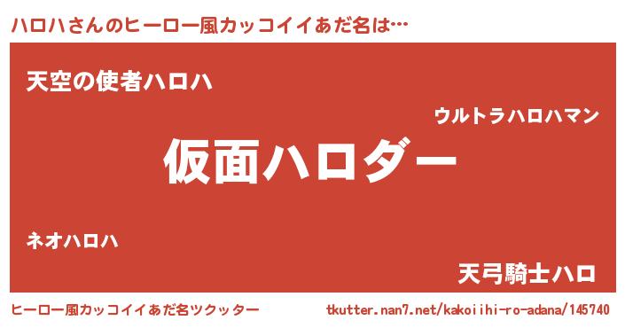 | 男性向けラノベタイトル風あだ名 | 『この素晴らしい世界にハロハを!』 |