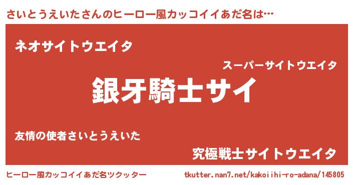 | 意味不明あだ名 | 『とにかく怪しいさいとうえいた』 |