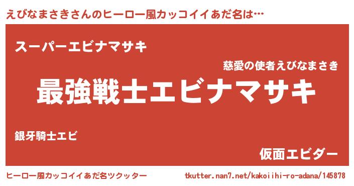 | 男性向けラノベタイトル風あだ名 | 『Re:えびなまさきから始める異世界生活』 |