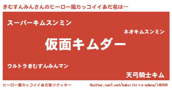 | 胡散臭い通販商品みたいなあだ名 | 『あなたにだけ特別に提供する世界で10本だけ現存している希少なブランデー…その名も「きむすんみん」』 |