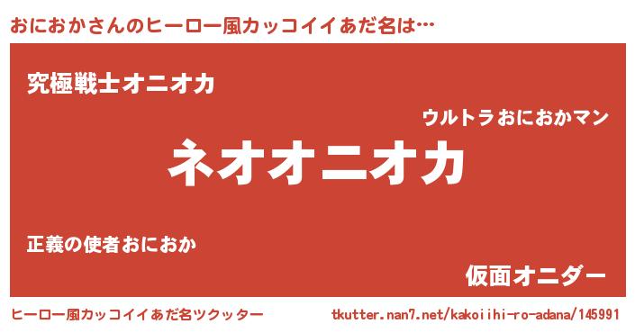 | 男性向けラノベタイトル風あだ名 | 『おにおかという概念が存在しない退屈な世界 』 |