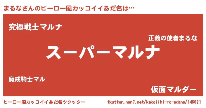 | 男性向けラノベタイトル風あだ名 | 『まるなの憂鬱』『マルナスレイヤー』 |