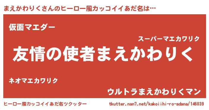 | 胡散臭い通販商品みたいなあだ名 | 『お金では代えられないマグネット磁石…その名も「まえかわりく」』 |