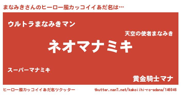 | 男性向けラノベタイトル風あだ名 | 『まなみきという概念が存在しない退屈な世界 』 |
