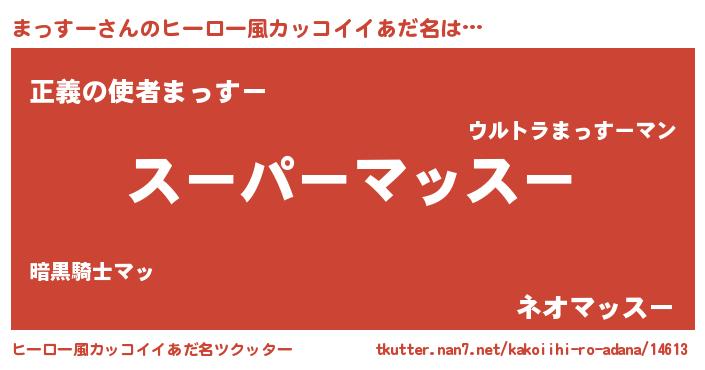 | 胡散臭い通販商品みたいなあだ名 | 『モテモテ間違いなし霊験あらたかなお札…その名も「まっすー」』 |