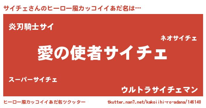 | 男性向けラノベタイトル風あだ名 | 『ノーゲーム・ノーサイチェ』 |