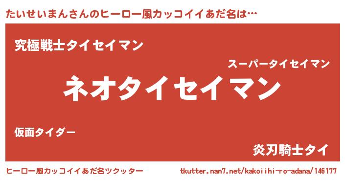| 男性向けラノベタイトル風あだ名 | 『たいせいまんという概念が存在しない退屈な世界 』 |