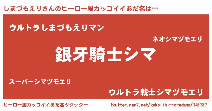 | 胡散臭い通販商品みたいなあだ名 | 『伝統あるサプリメント…その名も「しまづもえり」』 |