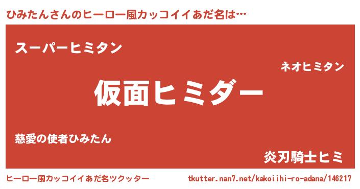 | 男性向けラノベタイトル風あだ名 | 『この素晴らしい世界にひみたんを!』 |