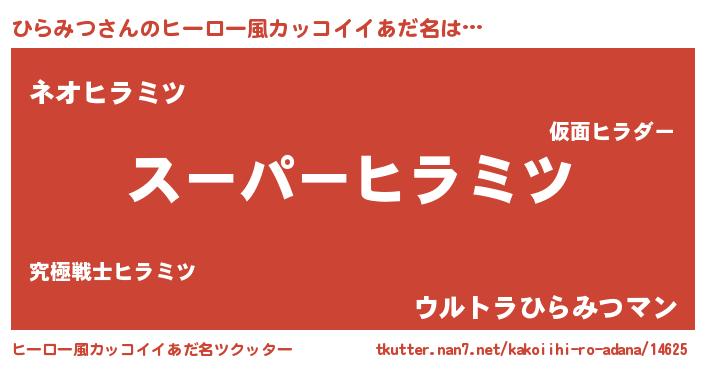 | 胡散臭い通販商品みたいなあだ名 | 『必ず成功するブレスレット…その名も「ひらみつ」』 |