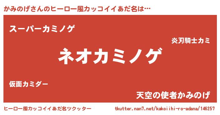 | 男性向けラノベタイトル風あだ名 | 『カミノゲスレイヤー』『緋弾のカミノゲ』 |