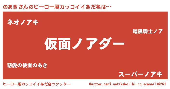 | 男性向けラノベタイトル風あだ名 | 『魔弾の王とのあき』『のあきの憂鬱』 |