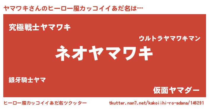 | 男性向けラノベタイトル風あだ名 | 『ヤマワキという概念が存在しない退屈な世界 』 |